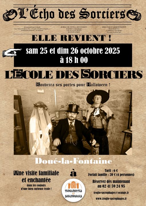 Les samedi 25 et dimanche 26 octobre, l’École des Sorciers revient à Troglodytes et Sarcophages à Doué-la-Fontaine !